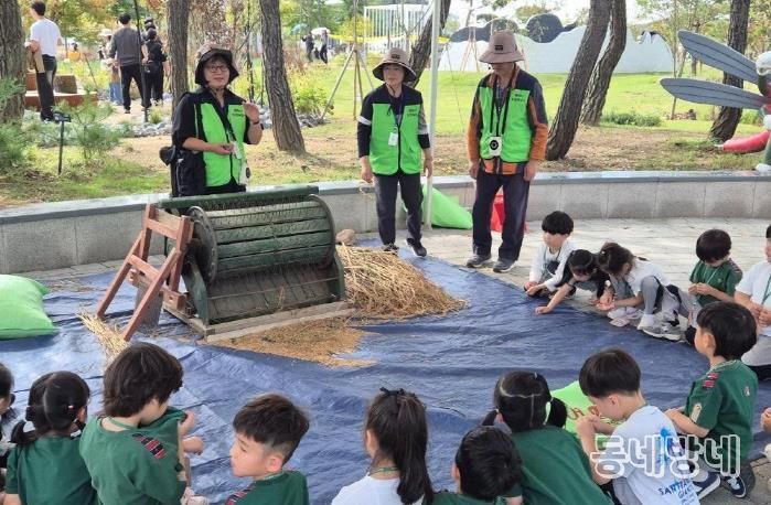 이번 체험은 농업생태원에서 직접 재배한 벼를 활용해, 관람객들이 호롱기와 홀테 등 전통 농기구를 이용한 옛날 방식의 벼 탈곡을 직접 체험할 수 있도록 마련됐다. 도시민들이 평소 접하기 어려운 전통 농사문화를 몸소 경험하며 농업의 소중함과 수확의 기쁨을 느낄 수 있는 시간이 됐다.