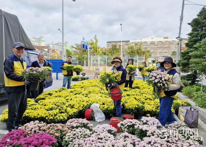 동네방네 김형규 기자 | 고양특례시 일산서구 가좌동 주민자치회는 지난 20일, 주민들이 가을 정취를 느낄 수 있도록 가좌동 주민자치센터와 장산·가좌 IC 일대에서 국화 식재활동을 펼쳤다.