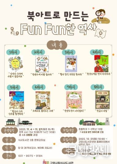 동네방네 김형규 기자 | 고양특례시 식사도서관은 오는 11월 4일부터 공공도서관 어린이 독서문화 프로그램 ‘북아트로 만드는 FunFun한 역사’를 운영한다.