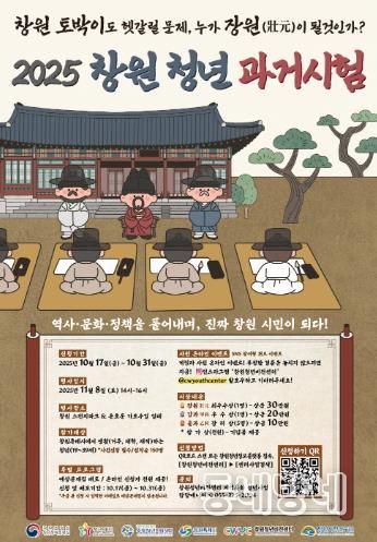 동네방네 김형규 기자 | 창원청년비전센터는 오는 11월 8일 창원 스펀지파크와 용지동 가로수길 일원에서 ‘2025 창원 청년 과거시험’을 개최한다.