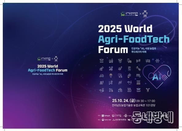 나주시는 오는 10월 24일 전라남도농업기술원 대강당에서 전라남도국제농업박람회, 월드푸드테크협의회와 함께 ‘2025 월드 아그리 푸드테크(Agri-FoodTech) 포럼’을 연다고 21일 밝혔다.