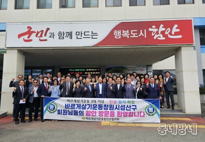 동네방네 김형규 기자 | 바르게살기운동 함안군협의회(회장 조용찬)는 지난 21일 함안군청 중회의실에서 창원시 성산구협의회(회장 김종호)와 함께 ‘바르게살기운동 핵심회원 교류 간담회’를 개최했다.