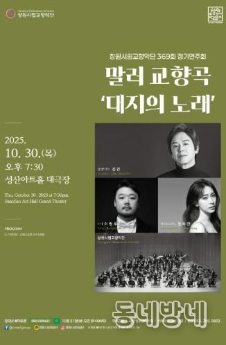 동네방네 김형규 기자 | 창원특례시는 오는 10월 30일 오후 7시 30분, 성산아트홀에서 창원시립교향악단(이하 창원시향)의 제369회 정기연주회를 개최한다고 밝혔다.