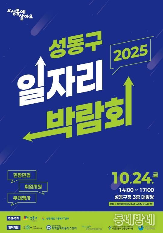 동네방네 김형규 기자 | 서울 성동구는 구직자들에게 다양한 취업 기회를 제공하고 기업의 구인난을 해소하기 위해 오는 24일 성동구청 3층 대강당에서 ‘2025 성동구 일자리박람회’를 개최한다고 밝혔다.