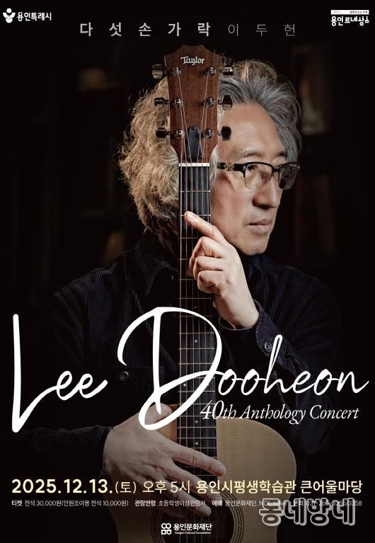 동네방네 김형규 기자 | (재)용인문화재단은 오는 12월 13일 오후 5시, 용인시평생학습관 큰어울마당에서 ‘다섯손가락 이두헌 40th Anthology Concert’를 개최한다.