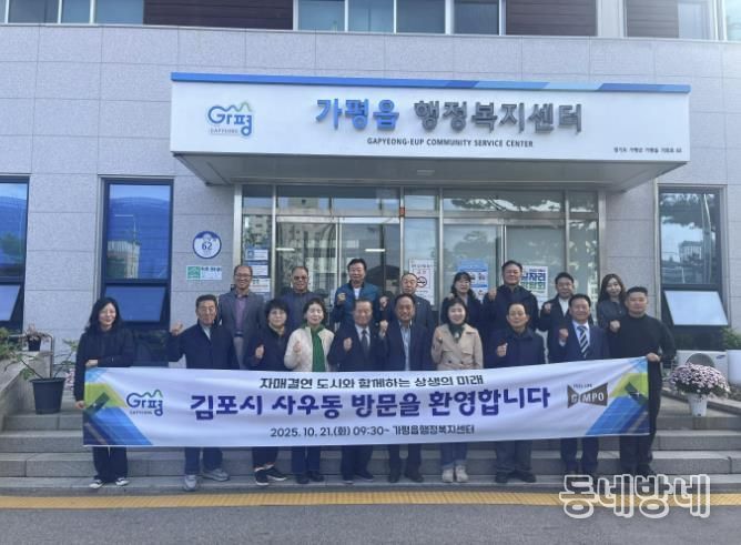 동네방네 김형규 기자 | 가평군 가평읍 행정복지센터는 21일 자매결연 도시인 김포시 사우동 행정복지센터 방문단을 맞아 양 지역 간 교류와 상생 발전을 위한 간담회를 열었다. 이번 만남은 2023년 9월 가평군과 김포시가 자매결연 협약을 한 이후, 상호 우호 증진과 협력 강화를 위해 마련했다.