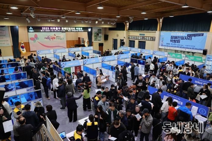 동네방네 김형규 기자 | 인천 미추홀구는 22일 구청 대회의실에서 장애인의 안정적 취업 지원과 사회참여 확대를 위한 ‘2025 장애인 일자리 박람회’를 성황리에 개최했다.