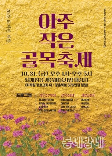 동네방네 김형규 기자 | 남양주시는 오는 31일 퇴계원읍 경춘북로 576번길 일원에서‘2025 퇴계원 새뜰, 아주 작은 골목 축제’를 개최한다고 22일 밝혔다.