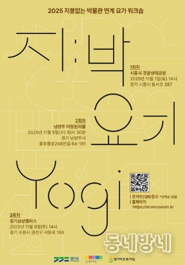 동네방네 김형규 기자 | 경기도와 경기문화재단은 경기도의 지역유산을 요가 동작과 해설로 새롭게 체험하는 ‘지붕없는 박물관 연계 요가 워크숍 〈지:박-요기(Yogi)〉’의 참여자를 모집한다고 밝혔다. 이번 프로그램은 ‘지붕없는 박물관(경기에코뮤지엄)’ 사업의 일환으로, 지역의 문화와 생태적 자원을 몸의 움직임으로 느끼는 참여형 워크숍이다.