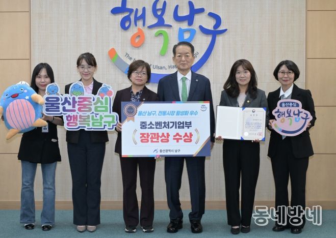 동네방네 김형규 기자 | 울산 남구는 전통시장 활성화에 기여한 공로를 인정받아 2025년 전통시장 활성화 유공 지방자치단체 부문 ‘중소벤처기업부 장관상’을 수상했다고 22일 밝혔다.