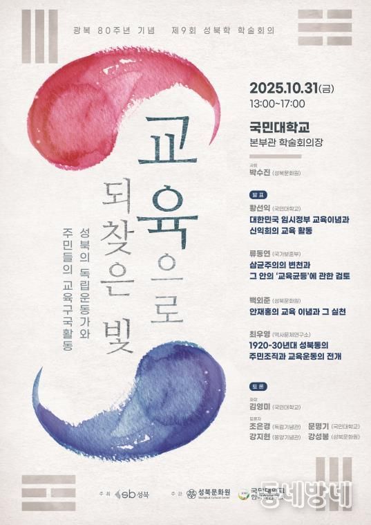 동네방네 김형규 기자 | 서울 성북구는 오는 10월 31일, 성북문화원과 국민대학교 한국사연구소가 공동 주관하는 광복 80주년 기념 제9회 성북학 학술회의 ‘교육으로 되찾은 빛’을 개최한다고 밝혔다.
