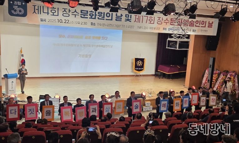 동네방네 김형규 기자 | 장수군은 22일 한누리전당 소공연장에서 ‘제4회 장수문화원의 날 및 제17회 장수문화예술인의 날’ 행사를 성황리에 개최했다고 밝혔다.