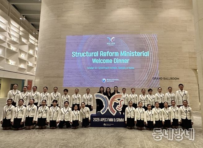 동네방네 김형규 기자 | 인천 계양구립소년소녀합창단이 10월 22일 영종도 그랜드하얏트인천에서 열린 ‘APEC 구조개혁장관회의’ 환영 만찬 무대에 올라 아름다운 하모니를 선보였다.