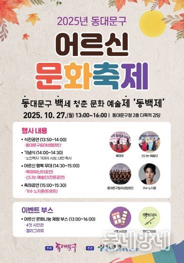 동네방네 김형규 기자 | 서울 동대문구는 오는 27일 구청 2층 다목적강당에서 '2025년 동대문구 어르신 문화축제 ‘동백제’'를 개최한다고 밝혔다.