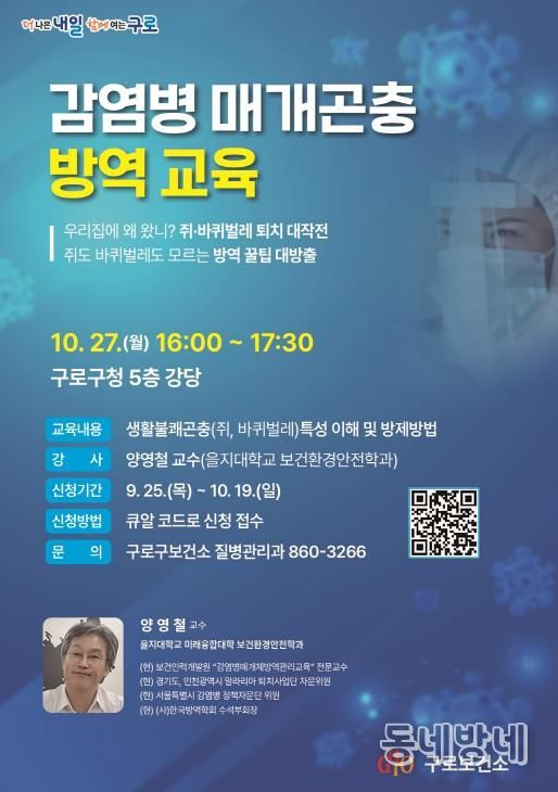 동네방네 김형규 기자 | 구로구가 오는 27일 오후 4시 구청 강당에서 ‘감염병 매개곤충 방역 교육’을 실시한다.