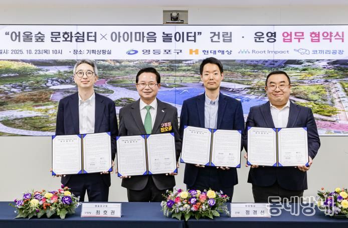 동네방네 김형규 기자 | 영등포구가 10월 23일 현대해상, 루트임팩트, 코끼리공장과 함께 ‘어울숲 문화쉼터×아이마음 놀이터’ 건립과 운영을 위한 다자간 업무협약을 체결했다고 밝혔다.
