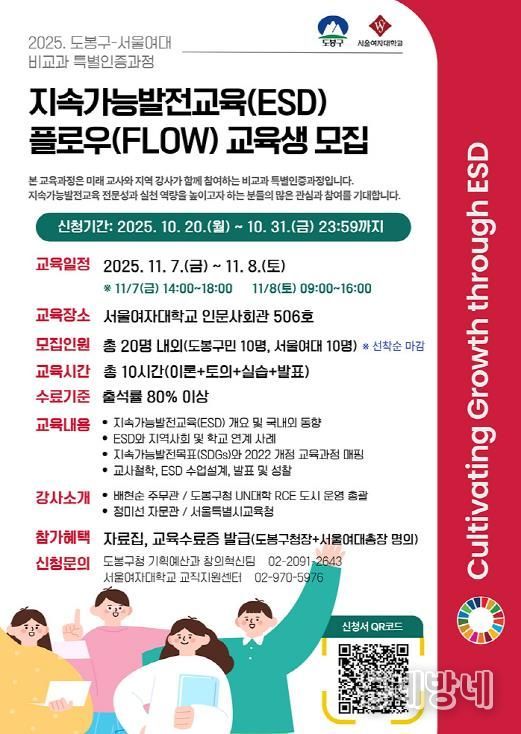동네방네 김형규 기자 | 서울 도봉구가 서울여자대학교와 함께 2025학년도 2학기부터 공동으로 ‘도봉-대학 ESD(지속가능발전교육) 캠퍼스’ 일환으로 ‘비교과 특별인증과정’을 운영한다.