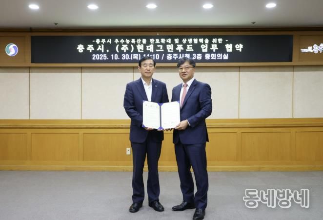 동네방네 김형규 기자 | 충주시가 지역 농특산물의 소비 기반 확대와 농가 소득 안정화를 위해 국내 대표 식품기업인 현대그린푸드와 손을 맞잡았다.