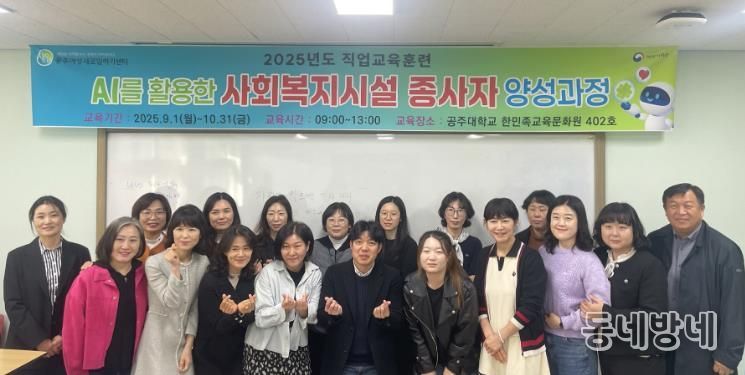동네방네 김형규 기자 | 공주여성새로일하기센터는 지난 31일 국립공주대학교 옥룡캠퍼스 평생교육원에서 국비지원 직업교육훈련 ‘인공지능(AI)을 활용한 사회복지시설 종사자 양성과정’을 성공적으로 마무리했다고 밝혔다.
