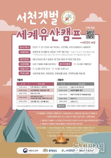 동네방네 김형규 기자 | 서천군은 오는 9일까지 초등학생 자녀를 둔 서천군민 가족을 대상으로 ‘서천갯벌 세계유산 캠프’참가자를 모집한다.