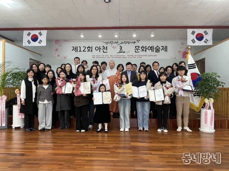 동네방네 김형규 기자 | 재단법인 아천문화교류재단(ACEF)이 주최-주관한 '제12회 아천효문화예술제’가 11월 1일 오후3시 아천문화교류센터에서 시상식이 개최됐다. 이날 행사에는 부모사랑 나라사랑의 올바른 가치관을 심어주기 위해 문화예술 부문의 우수한 인재들을 발굴 시상하고 올해로 12회를 맞았다.