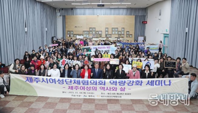 동네방네 김형규 기자 | 제주시여성단체협의회(회장 김선자)는 11월 4일 오후 2시 시청 1별관 회의실에서 ‘여성의 권익신장과 역량강화를 통한 양성평등 사회실현’ 워크숍을 개최한다.