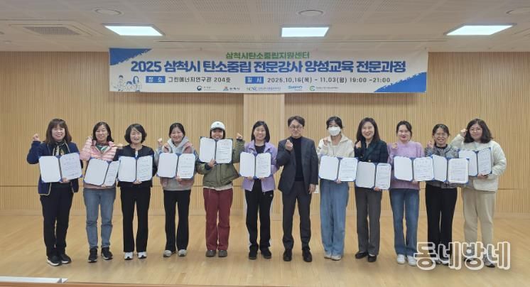 동네방네 김형규 기자 | 삼척시탄소중립지원센터는 11월 3일 오후 7시 강원대학교 삼척캠퍼스 그린에너지연구관에서 ‘2025 삼척시 탄소중립 전문강사 양성교육 전문과정’ 수료식을 개최했다.
