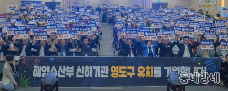 동네방네 김형규 기자 | 부산시 영도구주민자치위원장협의회는 지난 11월 4일 영도구청 대강당에서 주민 300여 명이 참석한 가운데 ‘해양수산부 산하기관 영도구 유치 염원 2차 결의대회’를 개최했다.