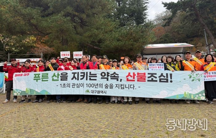 동네방네 김형규 기자 | 대구광역시는 가을철 산불조심기간을 맞아 11월 8일 팔공산 갓바위 등산로 입구에서 산불예방 캠페인을 실시했다.