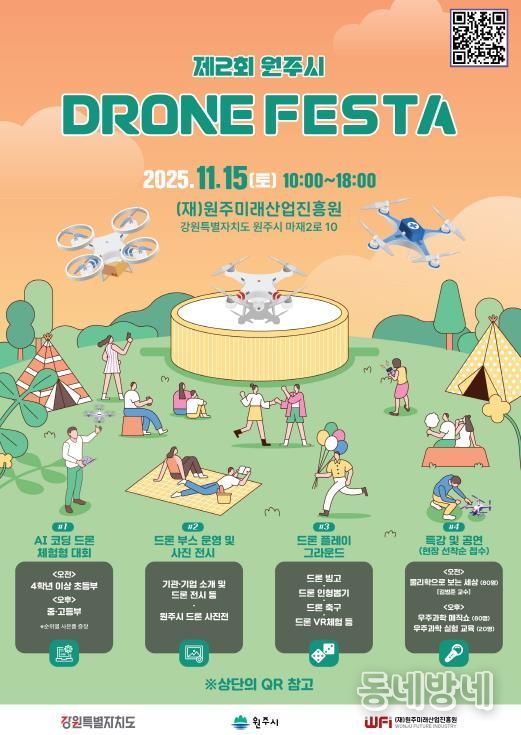 동네방네 김형규 기자 | 원주시는 오는 15일 오전 10시부터 오후 6시까지 원주미래산업진흥원에서 ‘제2회 원주시 드론페스타’를 개최한다.