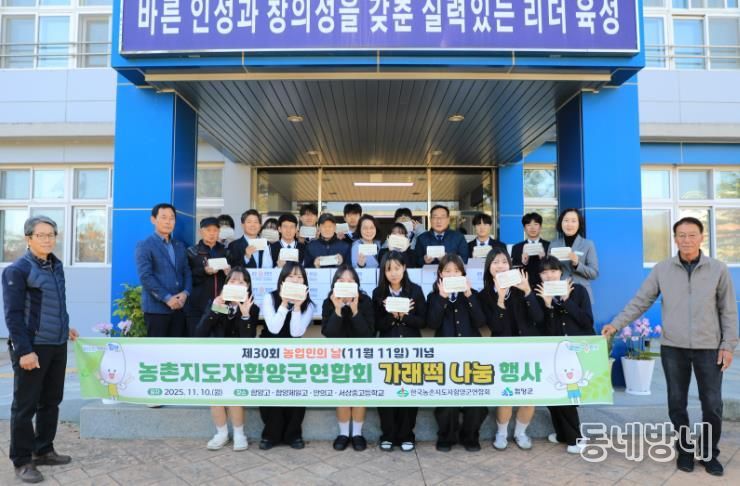동네방네 김형규 기자 | 농촌지도자 함양군연합회는 다가오는 ‘농업인의 날(11월 11일)’을 앞두고 11월 10일 관내 4개 고등학교를 방문하여 ‘사랑의 가래떡 나눔’ 행사를 개최했다.