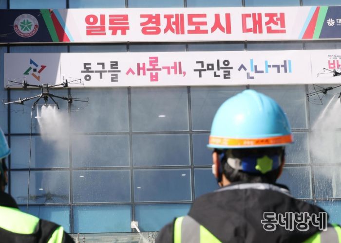 동네방네 김형규 기자 | 대전 동구는 10일 최근 잇따른 추락재해 발생과 중대재해처벌법 강화로 안전관리의 중요성이 커지는 가운데, 드론을 활용해 청사 외벽 청소를 실시했다고 밝혔다.