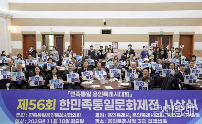 동네방네 김형규 기자 | 용인특례시는 10일 시청 컨벤션홀에서 민족통일 용인특례시협의회 주관으로 ‘민족통일 용인특례시대회와 제56회 한민족통일문화제전 시상식’이 열렸다고 밝혔다.