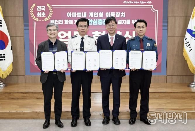 동네방네 김형규 기자 | 안산시는 지난 10일 안산시청 제1회의실에서 안산소방서 등 4개 기관과 아파트단지 내 개인형 이동장치(PM : Personal Mobility) 배터리 ‘안심 충전소’ 설치를 위한 업무협약(MOU)을 체결했다고 11일 밝혔다.