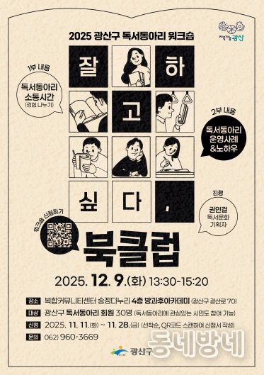 동네방네 김형규 기자 | 광주 광산구가 12월 9일 송정다누리센터에서 독서 문화 교류의 장인 독서동아리 워크숍을 개최한다.