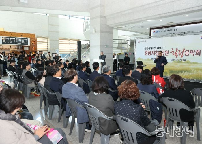 동네방네 김형규 기자 | 강릉시는 11일 점심시간을 활용하여 시청 1층 로비에서 직원들을 위한 힐링음악회를 개최한다.