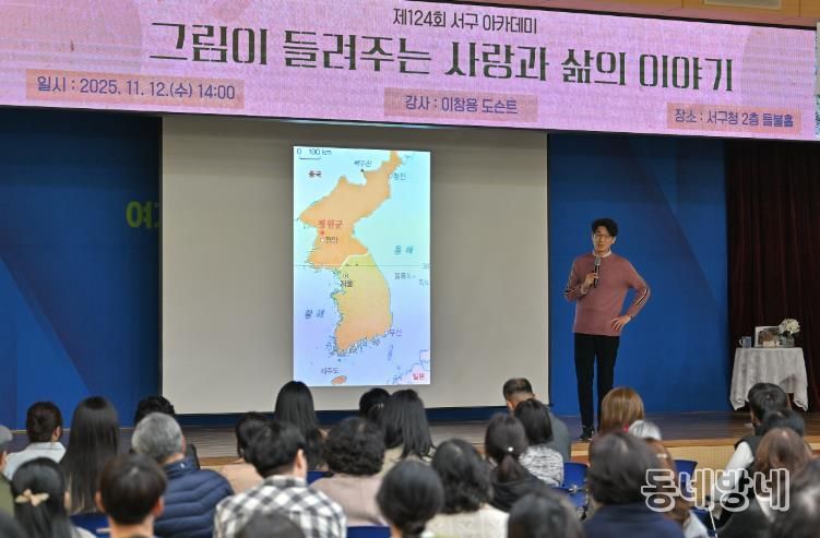 동네방네 김형규 기자 | 광주광역시 서구는 12일 서구청 들불홀에서 이창용 도슨트를 초청해 ‘그림이 들려주는 사랑과 삶의 이야기’를 주제로 제124회 서구 아카데미를 개최했다.