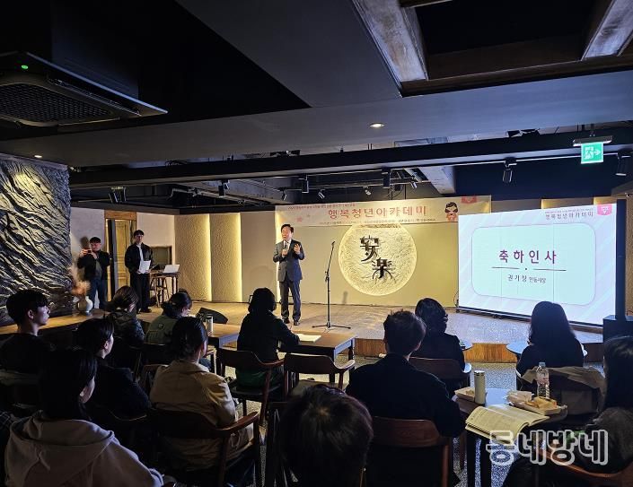 ‘행복청년 아카데미’는 청년층의 결혼․출산 인식 개선과 일․가정 양립 문화 확산을 목표로 추진되고 있으며, 강연․공연․질의응답 등 다채로운 프로그램으로 진행된다.