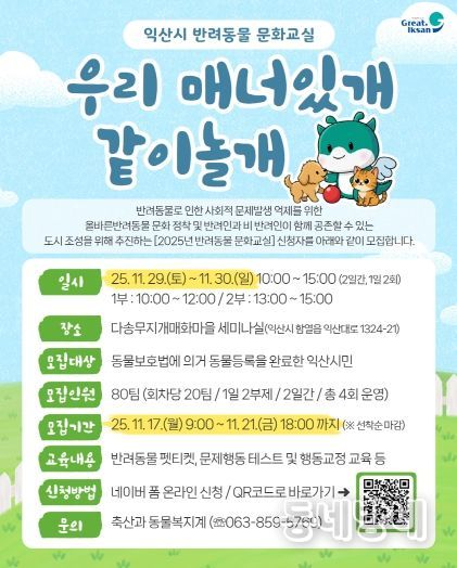 동네방네 김형규 기자 | 익산시가 올바른 반려동물 문화 확산을 위한 교육의 장을 연다.