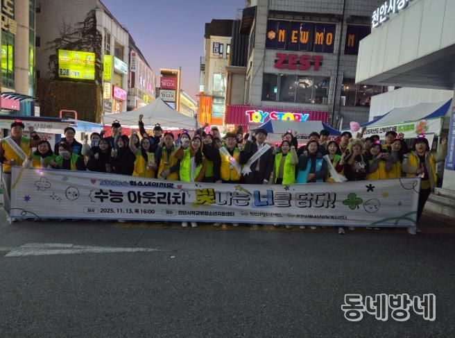 동네방네 김형규 기자 | (재)천안시청소년재단 천안시청소년상담복지센터는 지난 13일 2026학년도 대학수학능력시험일을 맞아 ‘2025년 청소년안전망 수능 아웃리치’를 진행했다.