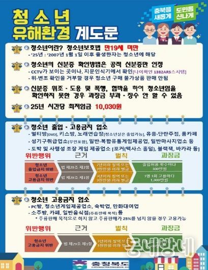 동네방네 김형규 기자 | 충북도는 오는 11월 17일부터 28일까지 수능 이후 청소년 보호를 위해 유해업소 집중단속을 실시한다. 이번 단속은 청소년들이 수능 이후 해방감과 호기심으로 인해 음주·흡연 등 유해환경에 노출되거나 일탈행위에 빠지는 것을 예방하기 위해 유해업소 밀집지역을 중심으로 단속 및 계도 활동이 추진된다.