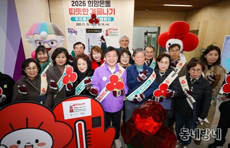 동네방네 김형규 기자 | 서울 동대문구는 14일 구청 1층 로비에서 ‘사랑의 온도탑’ 제막식을 열고, 서울 사회복지공동모금회와 함께하는 ‘2026 희망온돌 따뜻한 겨울나기, 우리동네 나눔캠페인’을 시작했다고 밝혔다.