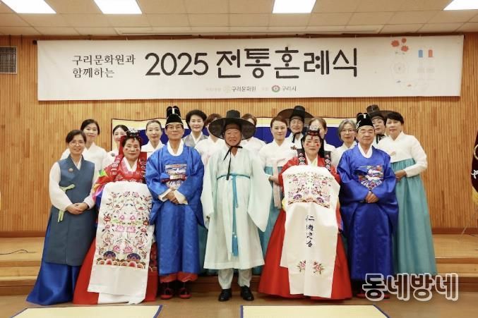 동네방네 김형규 기자 | 구리문화원은 지난 11월 15일, 늦가을 청명한 하늘 아래 전통혼례식을 성황리에 개최했다고 밝혔다. 이번 행사는 지난해에 이어 두 번째로 마련된 자리로, 반세기 동안 함께한 두 쌍의 부부를 위한 금 혼례 형식으로 진행됐다.