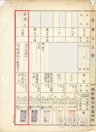 김응윤 선생은 1920년 4월 마산지청에서 독립운동 활동으로 징역 6월의 옥고를 치르고 출소했다. 같은 해 12월경 마산에서 독립을 목적으로 조직된 비밀결사 용진단의 서기로 독립운동 관련 문서를 등사하고 배부한 죄로 1922년 3월 체포되어 징역 1년의 옥고를 치렀다. 조국의 독립을 위해 두 번의 옥고를 치른 선생에게 건국훈장 애족장이 추서됐다.