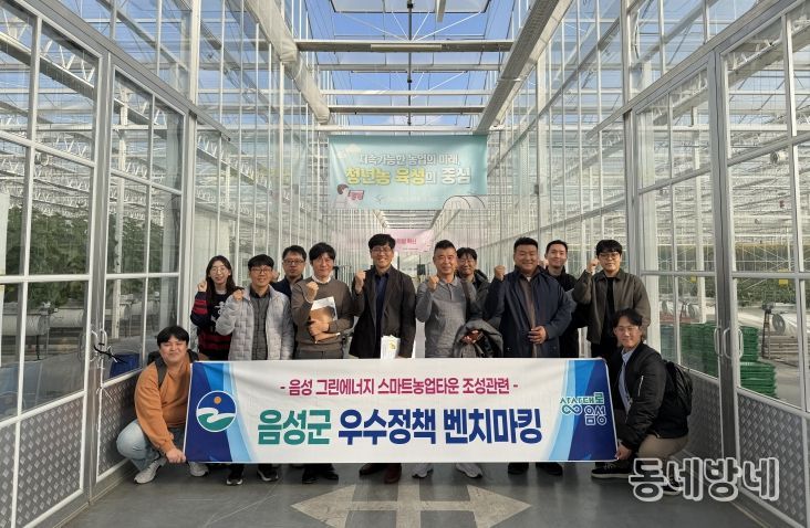 이번 벤치마킹은 국토부 투자선도지구 공모사업에 선정된 음성 그린에너지 스마트농업타운 조성 정책 수립과 전략을 모색하기 위해 마련됐으며, 2030전략실, 농정과, 농업기술센터 등 관계자 10여 명이 참석했다.