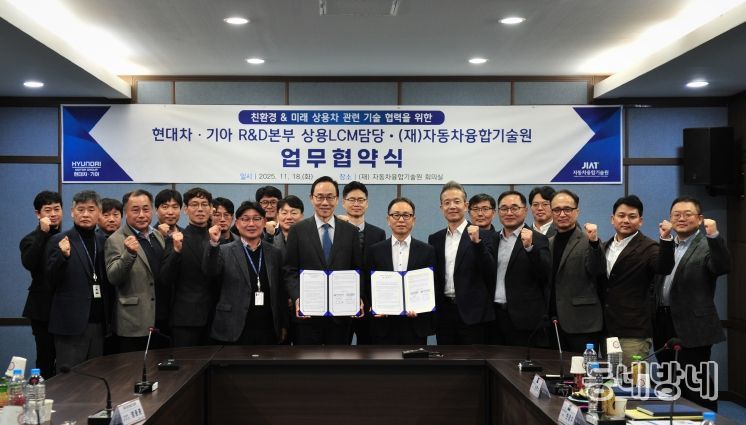 동네방네 김형규 기자 | 자동차융합기술원과 현대차·기아 R&D본부 상용LCM담당(부사장 박상현)은 11월 18일 친환경 및 미래상용차 분야 기술협력을 위한 업무협약(MOU)를 체결했다.