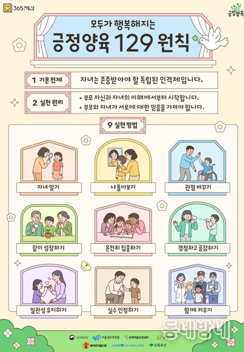 ‘긍정 양육’은 아이를 독립된 인격체로 존중하며, 부모와 자녀 간에 상호 소통과 이해, 신뢰를 바탕으로, 체벌 대신 긍정적인 방법으로 훈육하는 것을 말한다.