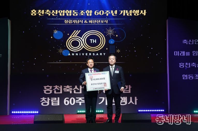 홍천축산업협동조합은 창립 60주년 기념식을 맞아 뜻깊은 자리에서 지역 인재 육성을 위한 무궁화장학금을 전달했다.