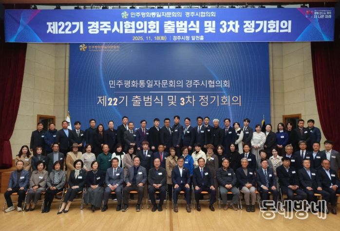동네방네 김형규 기자 | 경주시는 지난 18일 오후 4시 시청 알천홀에서 민주평화통일자문회의 경주시협의회(협의회장 장동호)의 ‘제22기 출범식 및 2025년 3차 정기회의’가 송호준 경주시 부시장, 자문위원 등 70여 명이 참석한 가운데 개최됐다고 밝혔다.