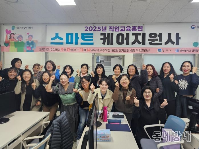 동네방네 김형규 기자 | 경주여성새로일하기센터는 지난 14일 ‘2025년 직업교육훈련 스마트 케어지원사’ 과정 수료식을 열고 총 20명의 교육생에게 수료증을 전달했다.